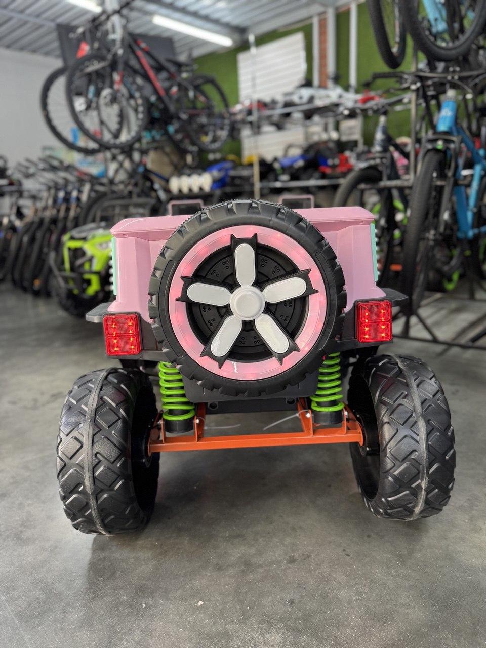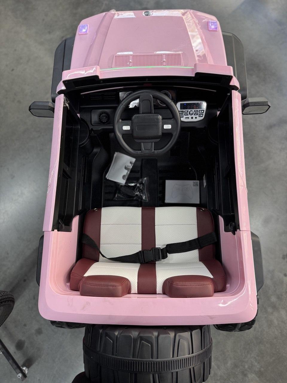 Детский электромобиль — двухместный для 2-х детей возрастом до 4-х лет или одного ребенка до 8 лет. Автомобиль приводится в движение 4-мя двигателями мощностью 45 ватт, питаемыми от 12-ти вольтового аккумулятора. Мягкие каучуковые колеса (EVA-колесо) обладают высоким протектором и маневренностью. Сидение выполнено из эко кожи с 2-х точечным ремнем безопасности. На колесах установлены амортизаторы для плавного прохождения неровностей на дорогах. Спереди и сзади установлены светодиодные фары для освещения дороги в темное время суток. На руле находятся кнопки управления сигналом и переключения музыки, которую можно проигрывать с помощью встроенного аудиоплеера напрямую с вашей флешки. Для более удобной посадки в машину установлены полноценные двери.